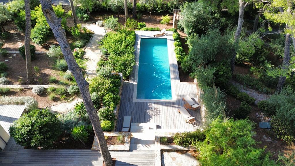 C'est sur la commune de Bandol dans le var, que notre client nous a confié la construction de sa piscine couloir de nage mais aussi tout l'aménagement extérieur autour du bassin et dans le jardin.